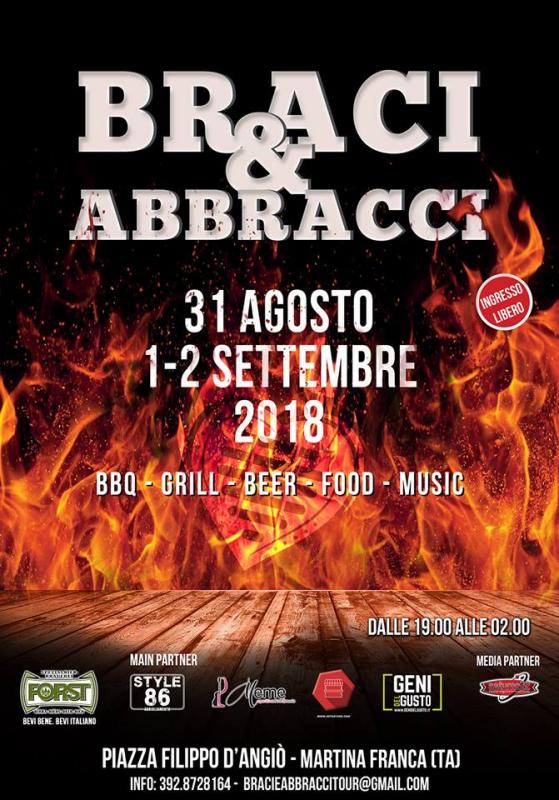 Martina Franca riaccende i fornelli per la terza edizione di Braci & Abbracci, una strepitosa kermesse di cucina, spettacolo, tradizione e cultura internazionale che tornerà ad inebriare di sapori e profumi Piazza d’Angiò dal 31 agosto al 2 settembre 2018.
