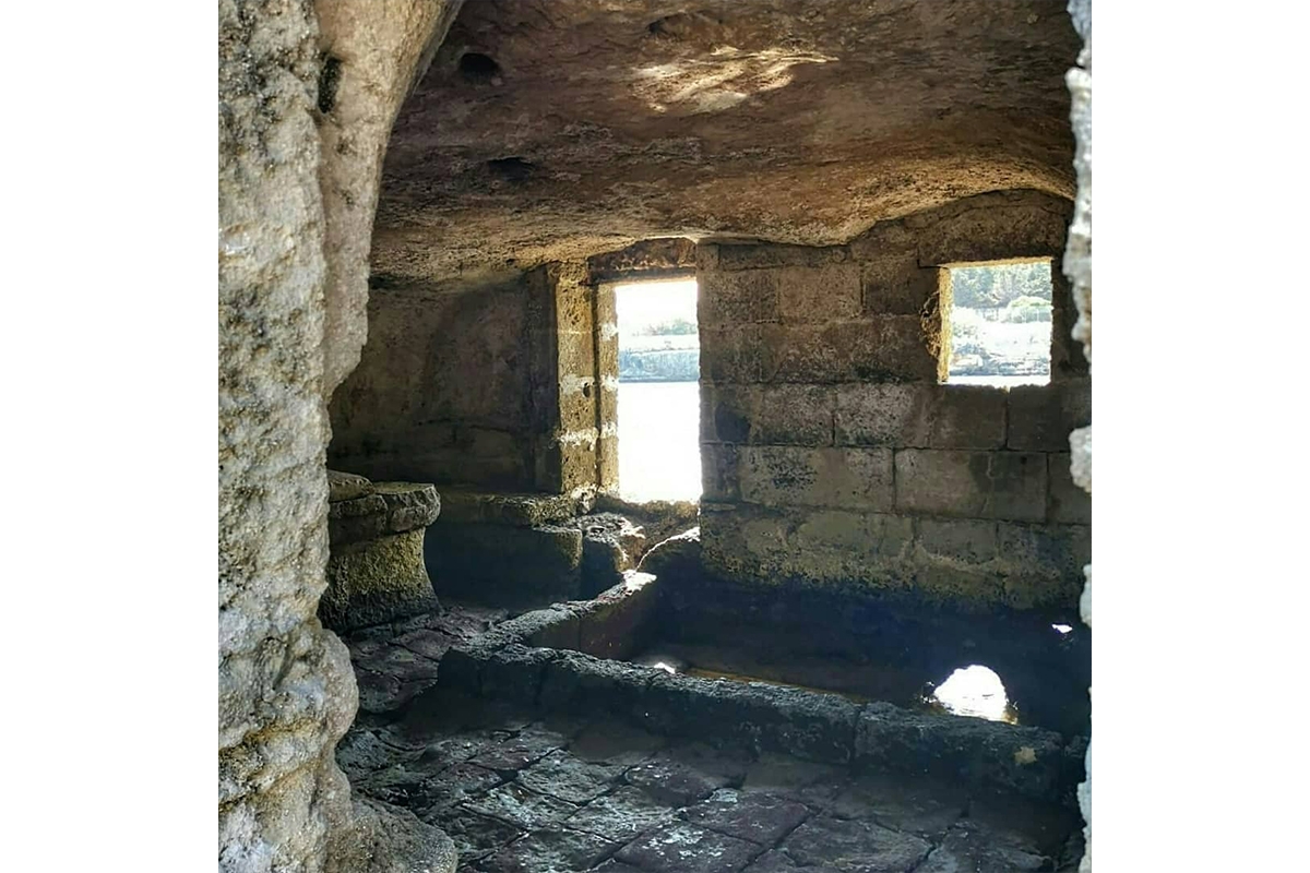 Nuotando da Porto Ghiacciolo in direzione del castello, non appena individuate si possono osservare i resti delle sorprendenti vasche e di un tavolo. Molto probabilmente quest’ultimo veniva utilizzato dai religiosi per rilassarsi e per trascorrere alcune ore alternando la meditazione al piacere di un bagno rinfrescante.