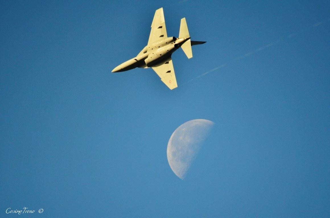 Un aereo militare che intercetta la luna, colto in flagrante nei cieli del Salento dagli obiettivi del fotografo Cosimo Trono. Lo scatto arriva dall’aeroporto militare di Galatina e raffigura un velivolo Alenia-Aermacchi T-346A”MASTER. “Per poco non mi spettina” ci scherza su Trono, che ha dato vita a una serie di splendidi scatti.