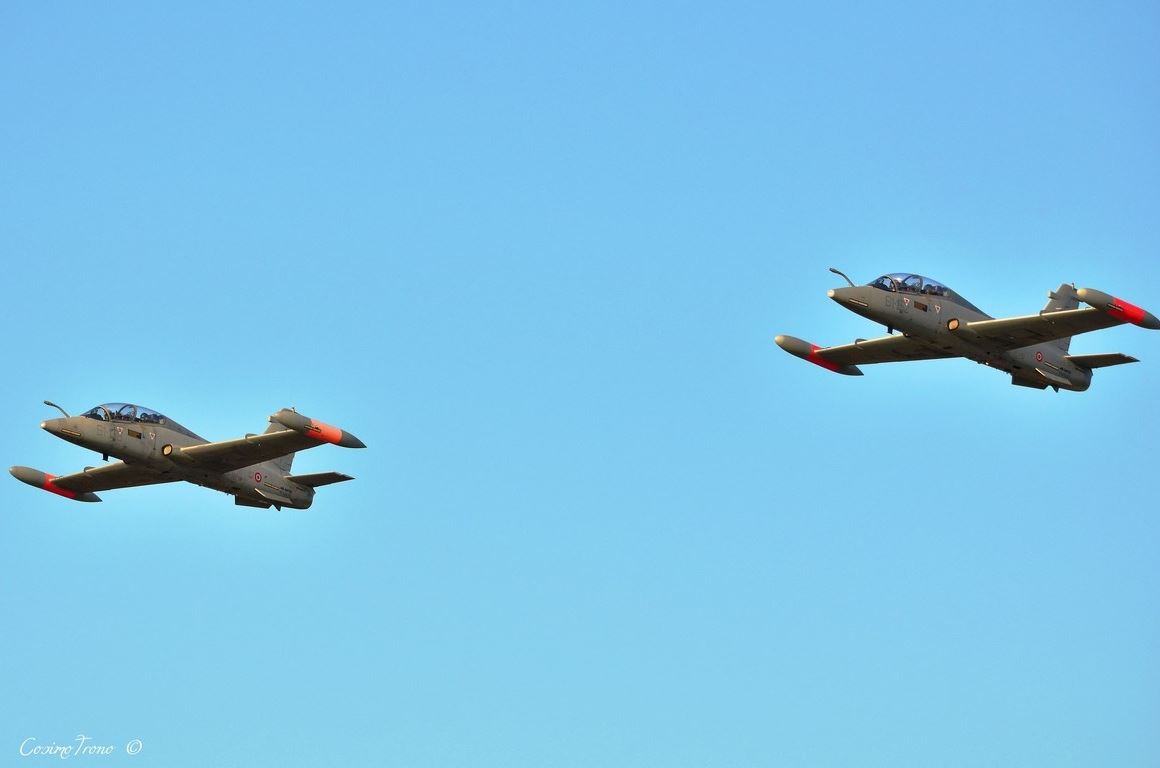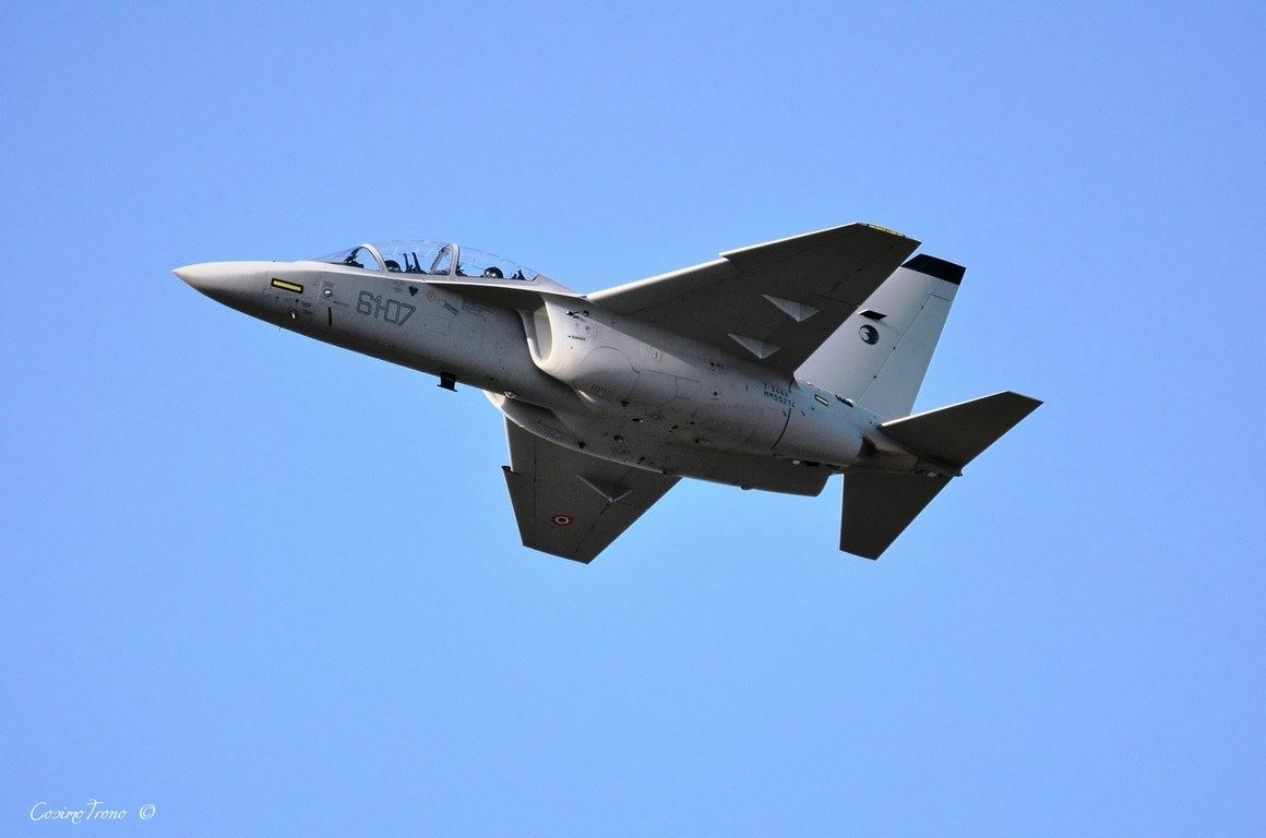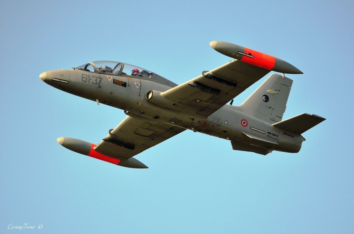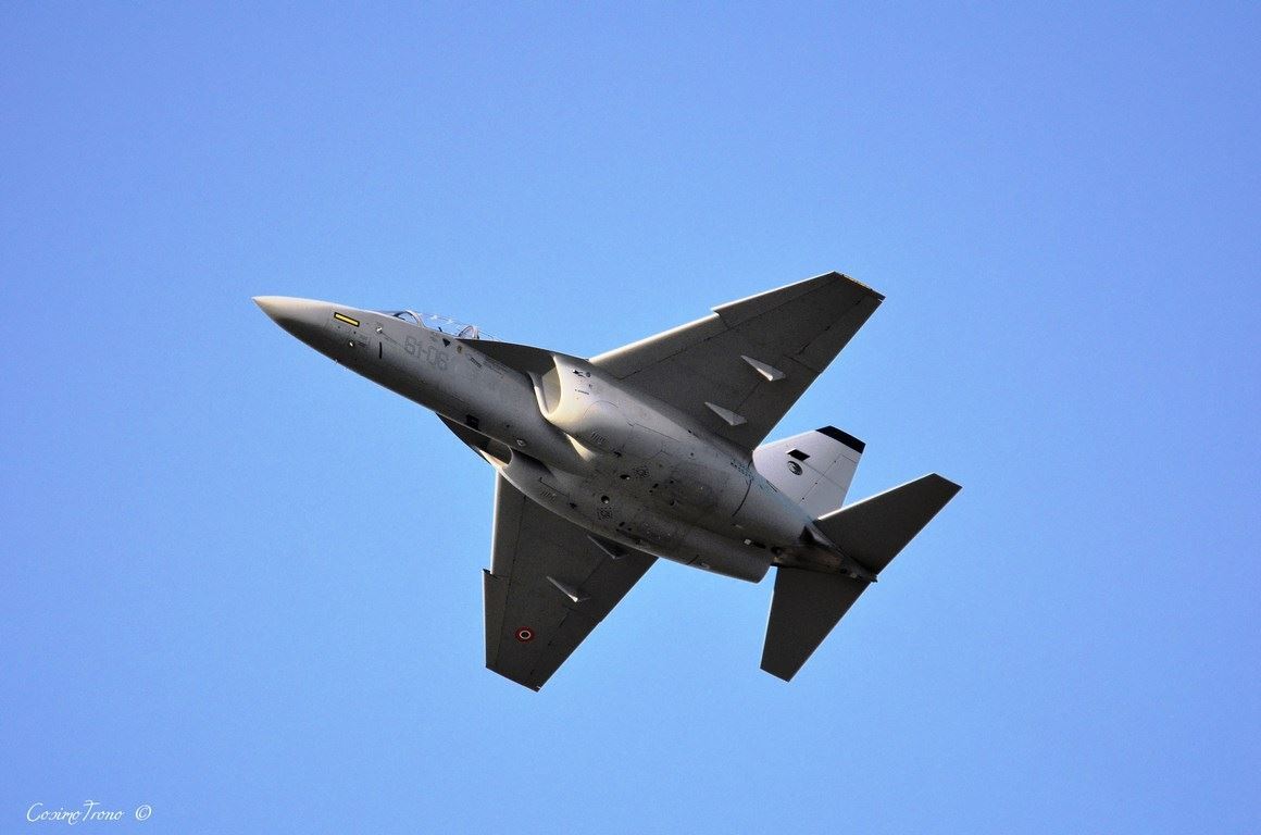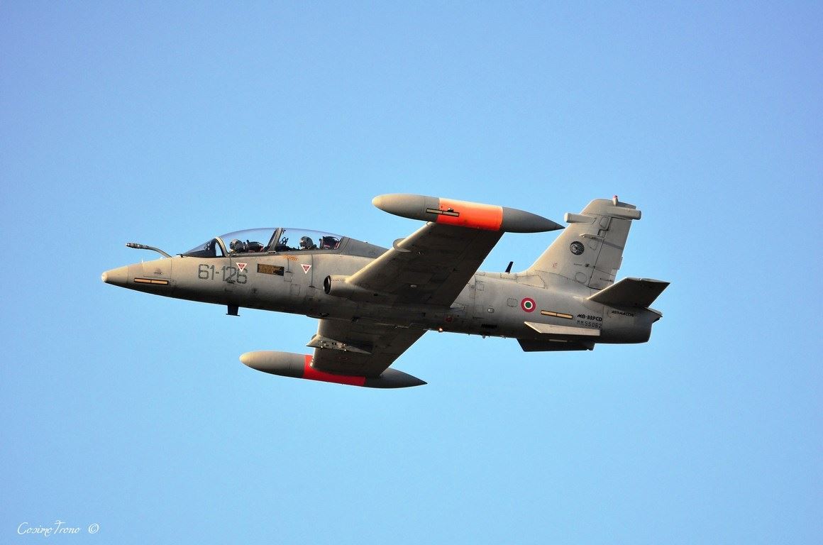 Quello nella foto è un velivolo in dotazione da qualche mese alla scuola di aviazione di Lecce (61° stormo), utilizzato per “l’addestramento avanzato pre-operativo dei naviganti destinati alle linee aerotattiche”. Il velivolo in questione è però utilizzato solo per l’addestramento: non sarà destinato operativamente al 313mo gruppo addestramento acrobatico “Frecce Tricolori”. Si tratta, spiegano dall’Aeronautica Militare, “una realtà di cui l’Aeronautica Militare è fiera, grazie alla quale Lecce è una scuola sempre più internazionale”.
