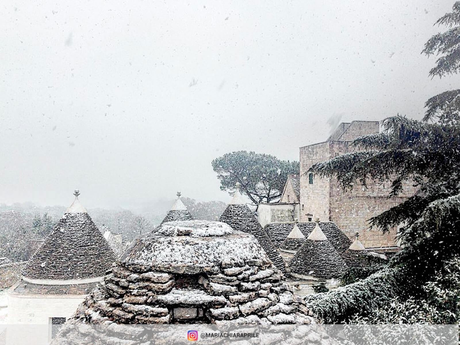 Quest’anno con l’ondata di gelo Burian è arrivato anche il dolcissimo nevischio che nel corso delle ore, diventato sempre più resistente ha disteso il suo manto candido su alcuni dei luoghi più belli di tutta la Puglia: dai trulli a Castel del Monte, la neve è arrivata quasi su tutta la regione.