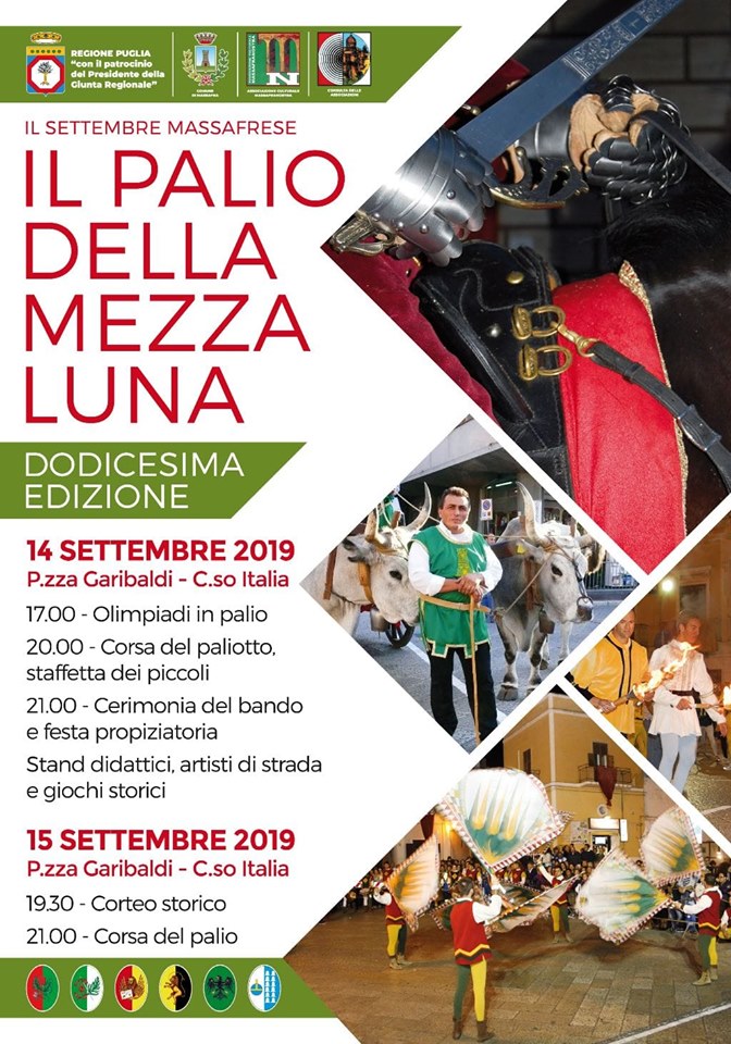 Dopo un anno di pausa, torna il “Palio della Mezzaluna”, a cura dell’associazione culturale “MassafraNostra“, con il patrocinio della Regione Puglia, presidenza della giunta regionale, del Comune di Massafra e della “Consulta delle Associazioni”.
