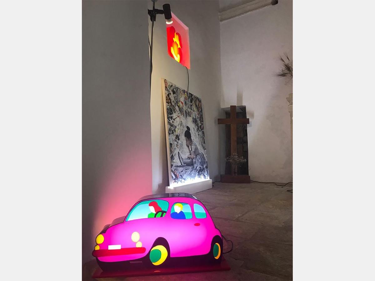 Si è tenuto nel pomeriggio di domenica 9 luglio 2017 l’opening della mostra “SpaceOfHumanity”, bi-personale degli artisti Marco Lodola e Vincenzo Mascoli con testo critico di Vittorio Sgarbi, evento a cura di Avangart. Nella suggestiva Chiesa Ortodossa di San Nicola, un piccolo splendore artistico nel centro storico di Locorotondo, gli artisti hanno accettato il delicato compito di dialogare con lo spazio e rendere il contenitore un luogo ideale per l’umanità. La mostra è patrocinata dal Comune di Locorotondo e farà parte degli eventi collaterali del Locus Festival 2017. “Locorotondo si veste di arte e lo fa attraverso due autentici testimoni del nostro tempo –spiega il sindaco della città, Tommaso Scatigna- Ed è così che la chiesetta di San Nicola, incastonata fra il bianco delle calce delle nostre cummerse, diventa il palcoscenico in cui al linguaggio pop fatto di scatole luminose e colore di Marco Lodola si contrappongono gli strappi e i volti del quotidiano raccontati da Vincenzo Mascoli”.