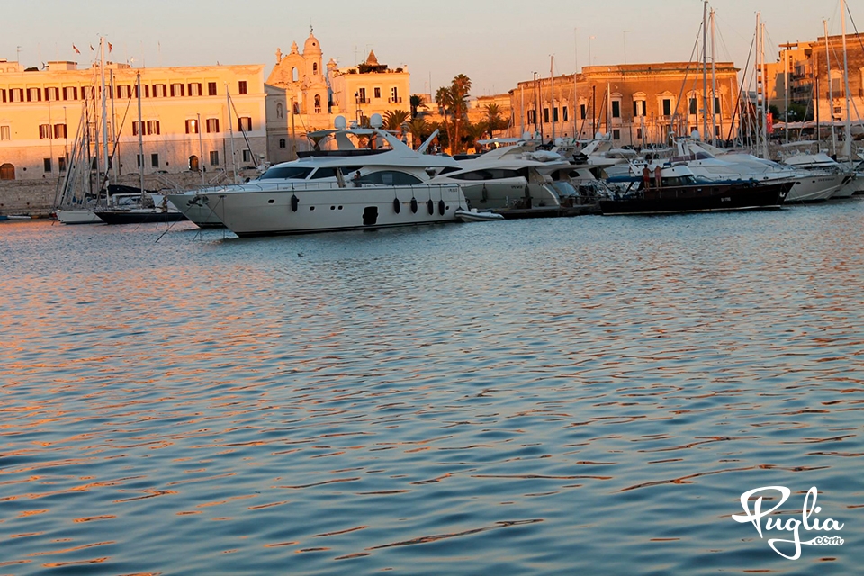 L’elegante città di Trani è riconoscibile dal mare. La sua famosa Cattedrale è costruita su di un promontorio affacciato sul mare e la sua sagoma si staglia anche a chi è fuori dal porto.