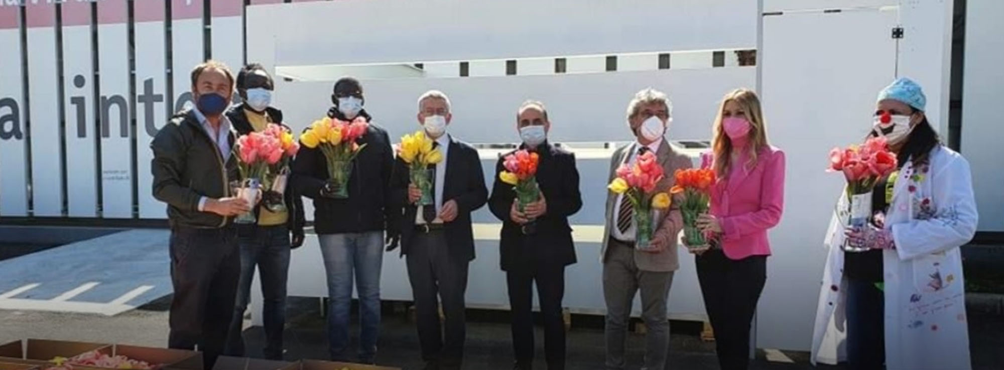 Intorno alle 11:30 di martedì 30 marzo, infatti, l’ideatore del primo hub rurale pugliese, la Presidente dell’Associazione “Cuore Foggia” dei Clown Dottori e i ragazzi di “Casa Sankara”, Mario Ilio Guadagno della Protezione Civile E.R.A. hanno regalato 700 tulipani.