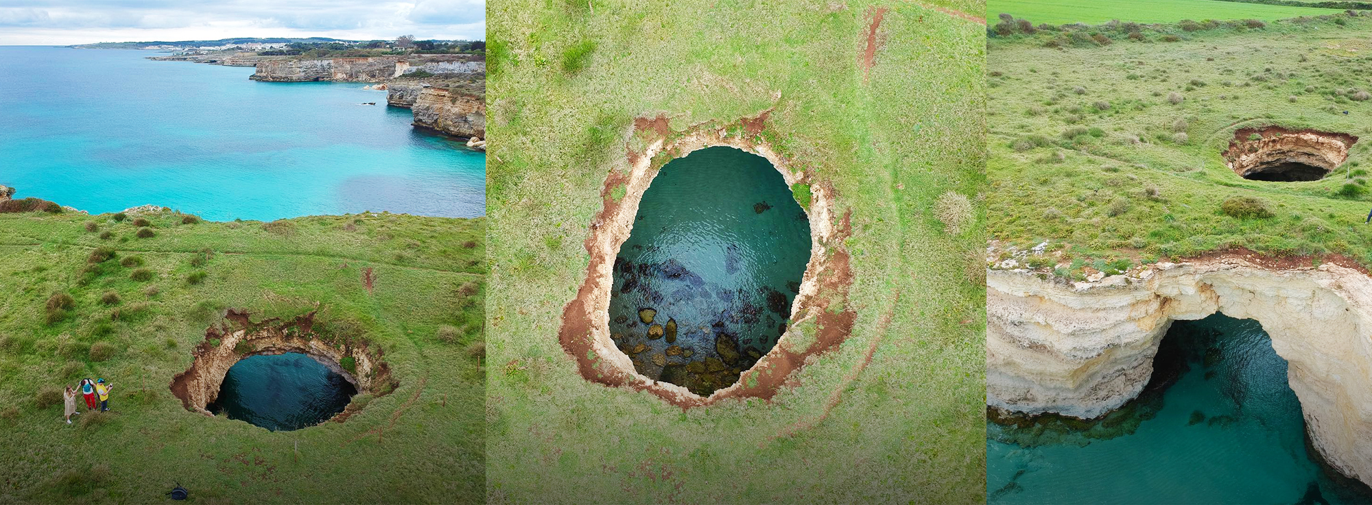 La Grotta Sfondata può essere considerata una vera e propria oasi naturale della zona Santo Stefano. A pochi metri dalla caletta di Toraiello, a nord di Otranto e non lontana dalla Baia del Mulino d’Acqua questo posto si presenta, visto dall’alto, con un enorme buco del terreno, il cui la macchia mediterranea si interrompe per alcuni metri in favore dell’azzurro del mare.